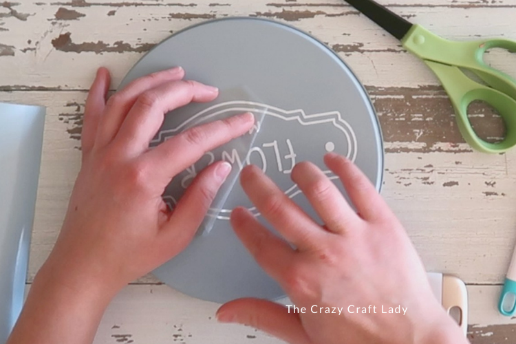- Add the Flower Market Decal. On the smaller burner cover, apply your decal. I cut a Flower Market design on my Cricut. One thing I’ve learned the hard way: transferring vinyl onto spray-painted metal can be a bit tricky. If vinyl isn’t cooperating, you could also hand paint a design or use a stencil.
