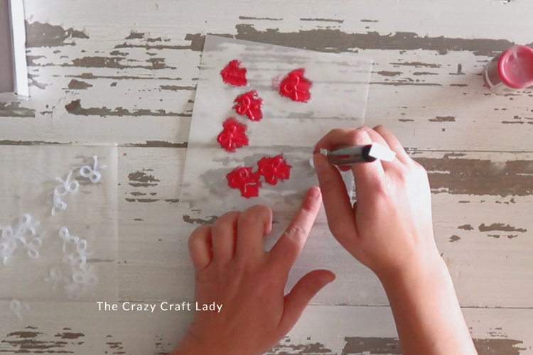- Make the Bows. Lay out a piece of parchment paper on your workspace. Using your hot glue gun, draw small bow shapes directly onto the paper. This part definitely takes a bit of practice—don’t be discouraged if a few bows turn out wonky! Make some extras: some will be duds, but you’ll end up with enough good ones to pick your favorites later.