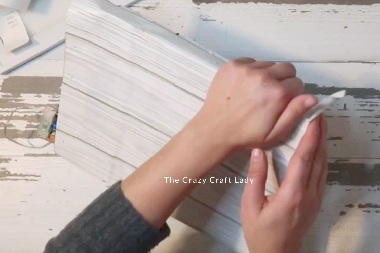 - Cover the Back. Cover the outside of the shoebox lid with white peel-and-stick wallpaper (or contact paper). Smooth it down carefully and trim corners neatly. Reinforce edges with white duct tape if needed.