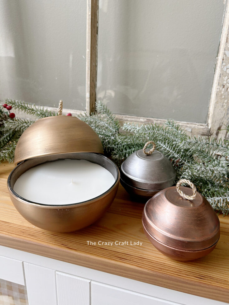 Make your own ornament-shaped candles inspired by Pottery Barn using Dollar Tree glass bowls! A festive DIY Christmas candle craft that looks high-end on a budget.